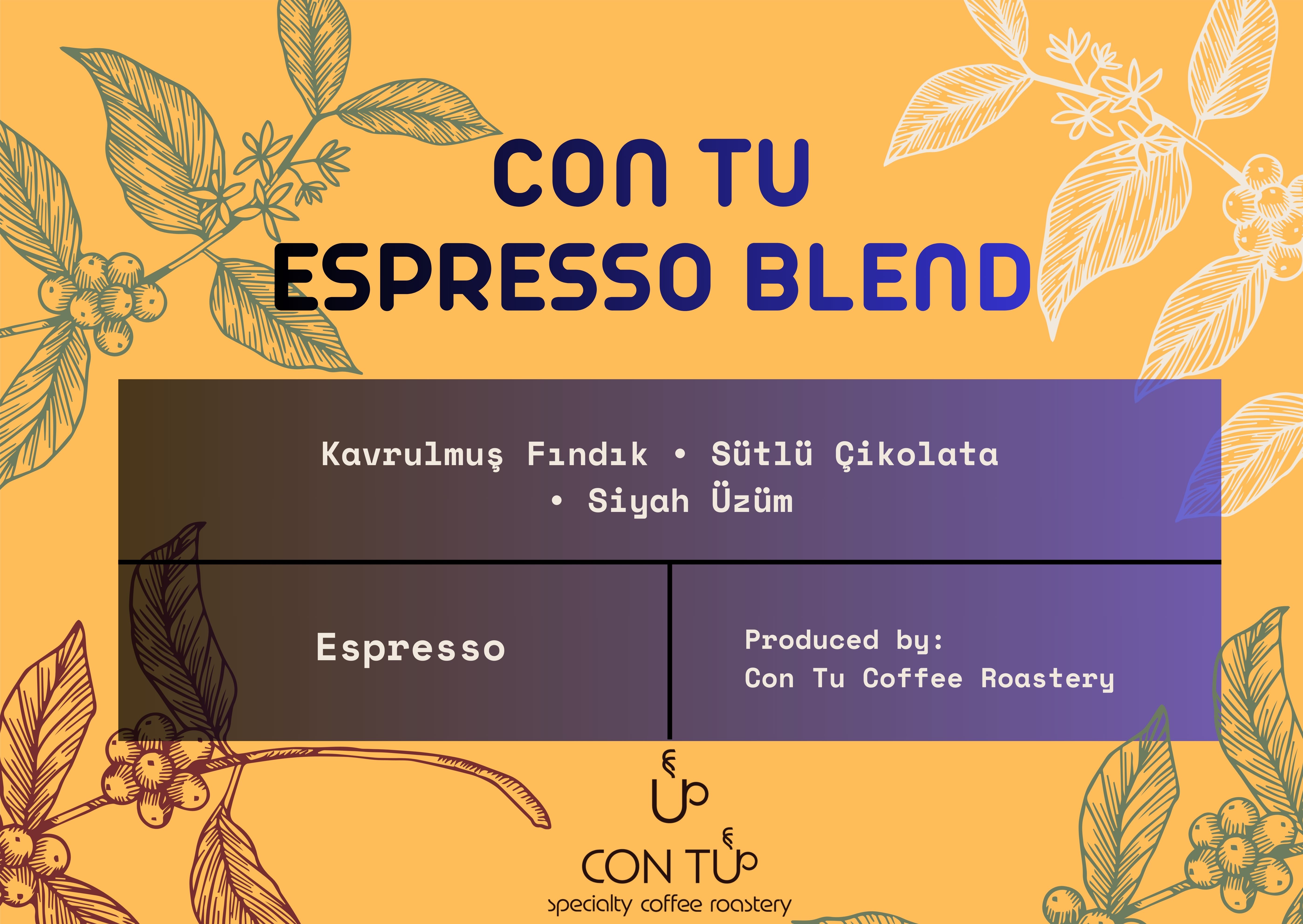 Con Tu Espresso Blend, dengeli yapısı ve kolay içimiyle her fincanda tutarlı ve keyifli bir espresso deneyimi sunmak için hazırlanmıştır. Yuvarlak gövdesi, belirgin tatlılık hissi ve yumuşak içim karakteri sayesinde günün her saatine uyum sağlar.